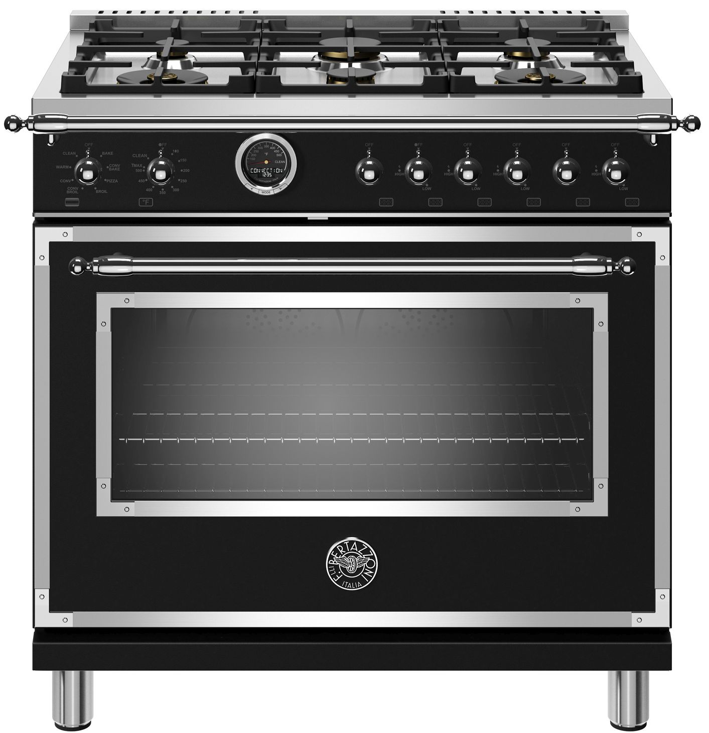 6 Monobloc brass burners with optional cast iron griddle over central segment